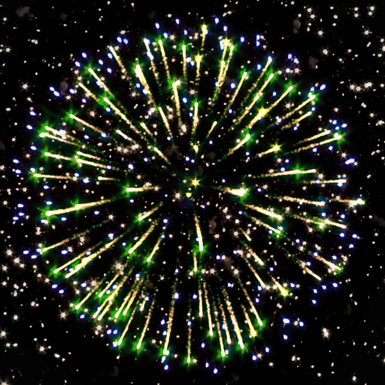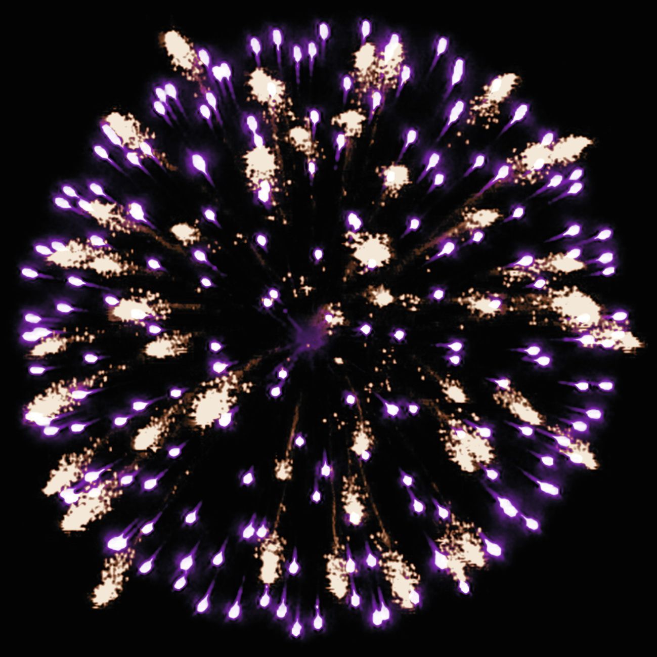 2-3. серебряных форсов с красными, зелёными огнями на концах, золотых мерцающих и фиолетовых, синих огней;